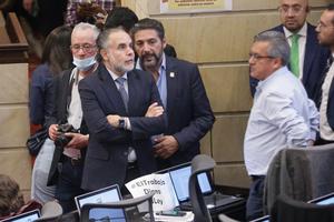 (250620) -- BOGOTÁ, 20 junio, 2025 (Xinhua) -- Imagen proveída por COLPRENSA del ministro del Interior colombiano, Armando Benedetti (i-frente), reaccionando durante la aprobación de la reforma laboral en la Cámara de Representantes del Congreso de la República, en la ciudad de Bogotá, capital de Colombia, el 20 de junio de 2025. (Xinhua/Lina Gasca/COLPRENSA) (cl) (rtg) (ra) (ce)