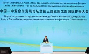(250622) -- ASTANA, 22 junio, 2025 (Xinhua) -- Sun Weidong, secretario general de la Secretaría del Mecanismo China-Asia Central, pronuncia un discurso durante el Foro de Desarrollo de la Cooperación China-Asia Central y el Tercer Foro de Comunicación Internacional de la Ruta de la Seda se llevan a cabo, en Astaná, Kazajistán, el 22 de junio de 2025. El Foro de Desarrollo de la Cooperación China-Asia Central y el Tercer Foro de Comunicación Internacional de la Ruta de la Seda fueron realizados el domingo en Astaná, la capital de Kazajistán. Alrededor de 240 representantes de medios, grupos de expertos, instituciones culturales y sectores empresariales de toda China y Asia Central entablaron discusiones a fondo sobre temas como la profundización de la cooperación en la Ruta de la Seda. (Xinhua/Li Renzi) (rtg) (da)