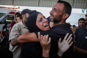 (250620) -- CIUDAD DE GAZA, 20 junio, 2025 (Xinhua) -- Palestinos se lamentan por las víctimas asesinadas en un ataque aéreo israelí en el interior del hospital Al-Shifa, en el centro de la Ciudad de Gaza, el 20 de junio de 2025. (Xinhua/Rizek Abdeljawad) (rtg) (ra) (ce)