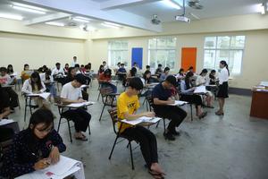 (250622) -- YANGON, 22 junio, 2025 (Xinhua) -- Estudiantes toman la Hanyu Shuiping Kaoshi (HSK), o la prueba estandarizada de competencia en chino mandarín, en la Universidad de Yangón de Myanmar, en Yangón, Myanmar, el 22 de junio de 2025. La prueba organizada por el Centro Internacional de Educación Le Hua fue llevada a cabo en la prestigiosa Universidad de Yangón de Myanmar, por primera vez el domingo. Un total de 200 estudiantes de escuelas de idioma chino a través del país se presentaron al examen, cursando niveles desde HSK 1 a HSK 6. (Xinhua/ Myo Kyaw Soe) (rtg) (da)