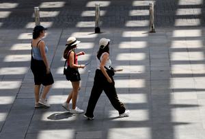 (250703) -- SEVILLA, 3 julio, 2025 (Xinhua) -- Imagen del 2 de julio de 2025 de personas caminando en medio de la ola de calor, en Sevilla, España. España continúa soportando una ola de calor sin precedentes. Más de 100 estaciones de monitoreo de la Agencia Estatal de Meteorología registraron temperaturas superiores a los 40 grados centígrados durante la primera gran ola de calor del año. (Xinhua/Li Jing) (jg) (ah) (ce)