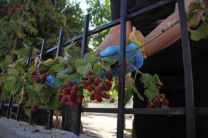 (250706) -- HASBAYA, 6 julio, 2025 (Xinhua) -- Imagen del 5 de julio de 2025 de un agricultor cosechando bayas, en Hasbaya, Líbano. (Xinhua/Taher Abu Hamdan) (oa) (da)