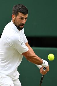 (250706) -- LONDRES, 6 julio, 2025 (Xinhua) -- Imagen del 5 de julio de 2025 de Novak Djokovic, devolviendo la pelota durante el partido de tercera ronda de individuales masculinos entre Novak Djokovic, de Serbia, y Miomir Kecmanovic, de Serbia, en el Campeonato de Tenis de Wimbledon, en Londres, Reino Unido. (Xinhua/Zhao Dingzhe) (oa) (ah)