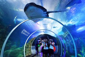 (250708) -- BEIJING, 8 julio, 2025 (Xinhua) -- Niños visitan un acuario, en Qingdao, en la provincia de Shandong, en el este de China, el 8 de julio de 2025. Los niños de todo el país enriquecen sus vacaciones de verano con actividades llenas de color. (Xinhua/Wang Haibin) (oa) (ah) (ce)