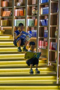 (250708) -- BEIJING, 8 julio, 2025 (Xinhua) -- Niños leen libros en una librería, en la ciudad de Zunhua, en la provincia de Hebei, en el norte de China, el 8 de julio de 2025. Los niños de todo el país enriquecen sus vacaciones de verano con actividades llenas de color. (Xinhua/Liu Mancang) (oa) (ah) (ce)