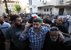(250707) -- NAPLUSA, 7 julio, 2025 (Xinhua) -- Imagen del 6 de julio de 2025 del funeral por el palestino Qusai Nasser, asesinado por soldados israelíes, en Naplusa, en el norte de Cisjordania. Dos palestinos fueron asesinados el domingo por soldados israelíes después de que rodearan una casa en la aldea de Salem, en el este de la ciudad de Naplusa, en el norte de Cisjordania, según un funcionario palestino y testigos presenciales. Ghassan Daghlas, gobernador de Naplusa de la Autoridad Palestina, identificó a las víctimas como Wissam Ishtayeh, de 37 años, y Qusai Nasser, de 23. (Xinhua/Ayman Nobani) (oa) (ah) (vf)