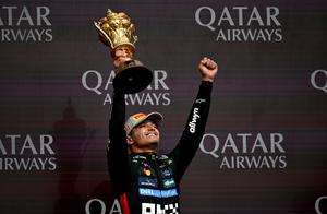 (250707) -- LONDRES, 7 julio, 2025 (Xinhua) -- Imagen del 6 de julio de 2025 del piloto británico de la escudería McLaren, Lando Norris, festejando durante la ceremonia de premiación del Gran Premio de Reino Unido de Fórmula Uno 2025, en el Circuito de Silverstone, en Londres, Reino Unido. (Xinhua/Li Ying) (rtg) (ah) (vf)