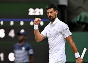 (250708) -- LONDRES, 8 julio, 2025 (Xinhua) -- Imagen del 7 de julio de 2025 de Novak Djokovic reaccionando durante el partido de octavos de final de individuales masculinos entre Novak Djokovic, de Serbia, y Alex De Minaur, de Australia, en el Campeonato de Tenis de Wimbledon, en Londres, Reino Unido. (Xinhua/Li Ying) (oa) (ah) (vf)