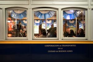 (250709) -- BUENOS AIRES, 9 julio, 2025 (Xinhua) -- Personas realizan un recorrido en uno de los antiguos coches La Brugeoise en la estación Perú del metro de Buenos Aires durante un paseo histórico, en el marco de las celebraciones por el Día de la Independencia, en la ciudad de Buenos Aires, capital de Argentina, el 9 de julio de 2025. (Xinhua/Martín Zabala) (mz) (ah) (ra) (vf)