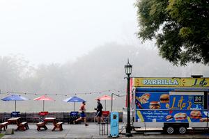 (250709) -- BUENOS AIRES, 9 julio, 2025 (Xinhua) -- Imagen del 8 de julio de 2025 de personas ejercitándose en las calles cubiertas de niebla, en Buenos Aires, Argentina. De acuerdo con el Servicio Meteorológico Nacional de Argentina, las regiones centrales del país fueron afectadas por niebla generalizada, lo que provocó una alerta meteorológica de nivel violeta para la capital Buenos Aires y provincias aledañas. La espesa niebla provocó retrasos y desvíos de vuelos en varios aeropuertos, interrumpió el transporte urbano y redujo la visibilidad a menos de 100 metros en algunas zonas. (Xinhua/Meng Dingbo) (ah) (ra) (vf)