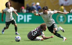 (250709) -- NUEVA JERSEY, 9 julio, 2025 (Xinhua) -- Imagen del 8 de julio de 2025 de Pedro Neto (d), de Chelsea, abriéndose paso durante el partido de semifinal entre Fluminense FC, de Brasil, y Chelsea FC, de Inglaterra, en la Copa Mundial de Clubes de la FIFA 2025, en el MetLife Stadium, en Nueva Jersey, Estados Unidos. (Xinhua/Li Ming) (ah) (ra) (vf)