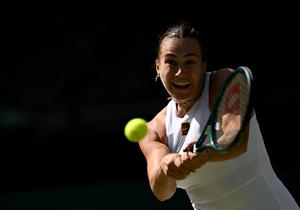 (250709) -- LONDRES, 9 julio, 2025 (Xinhua) -- Imagen del 8 de julio de 2025 de Aryna Sabalenka devolviendo la pelota durante el partido de cuartos de final de individuales femeninos entre Aryna Sabalenka, de Bielorrusia, y Laura Siegemund, de Alemania, en el Campeonato de Tenis de Wimbledon, en Londres, Reino Unido. (Xinhua/Li Ying) (ah) (ra) (vf)