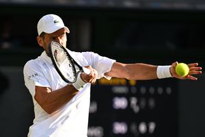 (250710) -- LONDRES, 10 julio, 2025 (Xinhua) -- Imagen del 9 de julio de 2025 de Novak Djokovic devolviendo la pelota durante el partido de cuartos de final de individuales masculinos entre Novak Djokovic, de Serbia, y Flavio Cobolli, de Italia, en el Campeonato de Tenis de Wimbledon, en Londres, Reino Unido. (Xinhua/Zhao Dingzhe) (rtg) (ra) (ce)