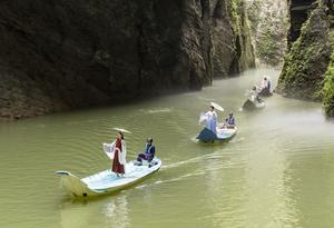 (250711) -- ENSHI, 11 julio, 2025 (Xinhua) -- Imagen del 9 de julio de 2025 de turistas tomando botes para disfrutar la vista del cañón de Pingshan, en el distrito de Hefeng, en la prefectura autónoma tujia y miao de Enshi, en la provincia de Hubei, en el centro de China. Basándose en la cultura étnica, los recursos paisajísticos y el patrimonio cultural ecológico, el mercado turístico de Enshi continúa atrayendo visitantes desde principios de este verano. (Xinhua/Zheng Jiayu) (rtg) (ra) (vf)