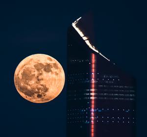 (250711) -- CIUDAD DE KUWAIT, 11 julio, 2025 (Xinhua) -- Imagen del 10 de julio de 2025 de la luna llena vista en el cielo sobre la Ciudad de Kuwait, en Kuwait. (Xinhua/Asad) (rtg) (ra) (vf)