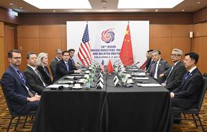 (250711) -- KUALA LUMPUR, 11 julio, 2025 (Xinhua) -- El ministro de Relaciones Exteriores chino, Wang Yi, también miembro del Buró Político del Comité Central del Partido Comunista de China, se reúne con el secretario de Estado estadounidense, Marco Rubio, en Kuala Lumpur, Malasia, el 11 de julio de 2025. (Xinhua/Cheng Yiheng) (jg) (da) (ce)