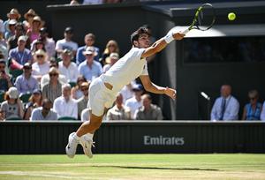 (250711) -- LONDRES, 11 julio, 2025 (Xinhua) -- Carlos Alcaraz devuelve la pelota durante el partido de semifinal de individuales masculinos entre Carlos Alcaraz, de España, y Taylor Fritz, de Estados Unidos, en el Campeonato de Tenis de Wimbledon, en Londres, Reino Unido, el 11 de julio de 2025. (Xinhua/Zhao Dingzhe) (oa) (ra) (vf)