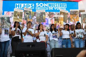 (250711) -- CARACAS, 11 julio, 2025 (Xinhua) -- Imagen del 10 de julio de 2025 de familiares de niños migrantes retenidos en Estados Unidos sosteniendo pancartas durante una manifestación, en Caracas, Venezuela. El pueblo venezolano marchó el jueves en Caracas hasta la sede local de la Organización de las Naciones Unidas para exigir la libertad de los niños retenidos en Estados Unidos. (Xinhua/Marcos Salgado) (ms) (oa) (ra) (vf)