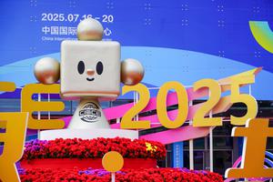 (250716) -- BEIJING, 16 julio, 2025 (Xinhua) -- Imagen del 16 de julio de 2025 de Linky, mascota de la Exposición Internacional de la Cadena de Suministro de China (CISCE, por sus siglas en inglés) afuera de la sede de la III CISCE, en Beijing, capital de China. Con el tema "Conectar el Mundo para un Futuro Compartido", la exposición, organizada por el Consejo Chino para la Promoción del Comercio Internacional, se inauguró el miércoles en Beijing. (Xinhua/Wang Jingyi) (ah) (ra) (ce)