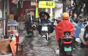 (250720) -- HAIKOU, 20 julio, 2025 (Xinhua) -- Personas montan motocicletas a través de un área inundada, en Haikou, en la provincia de Hainan, en el sur de China, el 20 de julio de 2025. El tifón Wipha, el sexto en lo que va de año, tocó tierra cerca de la ciudad de Jiangmen, en la provincia meridional china de Guangdong, aproximadamente a las 17:50 horas del domingo, según el observatorio meteorológico provincial de Guangdong. A las 8:30 a.m. del domingo, Hainan elevó del nivel IV al nivel III su respuesta de emergencia para el control de inundaciones y tifón, mientras se espera que fuertes vientos y tormentas impacten la provincia isleña entre el domingo y el martes, de acuerdo con el buró de manejo de emergencias provincial. (Xinhua/Yang Guanyu) (rtg) (ah)