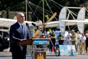 (250720) -- BUCAREST, 20 julio, 2025 (Xinhua) -- El primer ministro rumano, Ilie Bolojan, pronuncia un discurso durante las celebraciones del Día de la Aviación y de la Fuerza Aérea rumana, en Bucarest, Rumania, el 20 de julio de 2025. (Xinhua/Cristian Cristel) (oa) (ah)