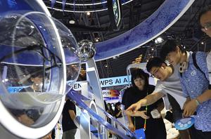 (250727) -- SHANGHAI, 27 julio, 2025 (Xinhua) -- Personas visitan una exposición de anteojos inteligentes en la Conferencia Mundial sobre IA 2025, en Shanghai, en el este de China, el 27 de julio de 2025. La Conferencia Mundial sobre IA 2025 en curso muestra los últimos avances en IA del mundo y, al mismo tiempo, proporciona una plataforma para que los visitantes accedan a productos y tecnologías de IA. (Xinhua/Fang Zhe) (rtg) (ah)