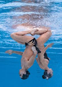 (250724) -- SINGAPUR, 24 julio, 2025 (Xinhua) -- Imagen del 23 de julio de 2025 de Theodora Garrido/Nicolas Campos, de Chile, compitiendo durante la final de dúo técnico mixto de natación artística en el Campeonato Mundial de Deportes Acuáticos, en Singapur. (Xinhua/Xia Yifang) (rtg) (ra) (ce)