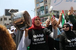 (250804) -- RAMALLAH, 4 agosto, 2025 (Xinhua) -- Imagen del 3 de agosto de 2025 de palestinos participando en una manifestación contra la guerra en curso en la Franja de Gaza, en la ciudad cisjordana de Ramallah. Miles de palestinos salieron a las calles el domingo en varias ciudades de Cisjordania para denunciar la actual ofensiva militar israelí en la Franja de Gaza y su restricción al envío de ayuda, que ha provocado desnutrición generalizada y hambruna en el enclave costero. (Xinhua/Nidal Eshtayeh) (oa) (ah) (ce)