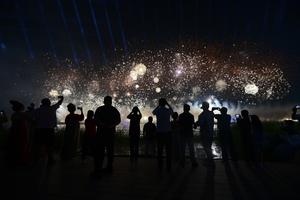 (250807) -- CHENGDU, 7 agosto, 2025 (Xinhua) -- Personas observan los fuegos artificiales durante la ceremonia de inauguración de los Juegos Mundiales 2025, en Chengdu, en la provincia de Sichuan, en el suroeste de China, el 7 de agosto de 2025. (Xinhua/Jiang Han) (jg) (ah) (ce)