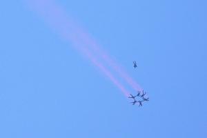 (250810) -- SINGAPUR, 10 agosto, 2025 (Xinhua) -- Imagen del 9 de agosto de 2025 de paracaidistas de los Leones Rojos de las Fuerzas Armadas de Singapur realizando una caída libre durante las celebraciones del Día Nacional, en Singapur. Singapur celebró el sábado el 60 aniversario de su independencia. (Xinhua/Then Chih Wey) (oa) (da)