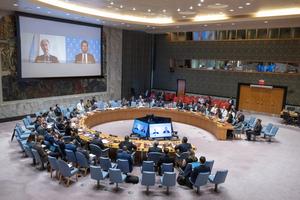 (250821) -- NACIONES UNIDAS, 21 agosto, 2025 (Xinhua) -- El enviado especial de la ONU para Siria, Geir Pedersen (i-en pantalla), habla por videoconferencia en una reunión del Consejo de Seguridad en la sede de la ONU, en Nueva York, el 21 de agosto de 2025. Pedersen advirtió el jueves sobre el "empeoramiento del clima político" en medio de la precaria situación de seguridad en Siria. (Xinhua/Eskinder Debebe/UN Photo) (jg) (ah) (vf)