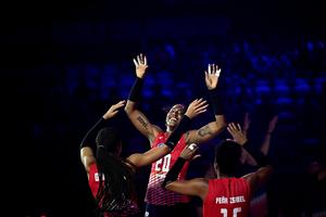 (250823) -- CHIANG MAI, 23 agosto, 2025 (Xinhua) -- Brayelin Elizabeth Martínez (c), de República Dominicana, anima junto a sus compañeras de equipo durante el partido del grupo F de la fase preliminar entre República Dominicana y Colombia, en el Campeonato Mundial de Voleibol Femenino, en Chiang Mai, Tailandia, el 23 de agosto de 2025. (Xinhua/Hou Zhaokang) (rtg) (da)