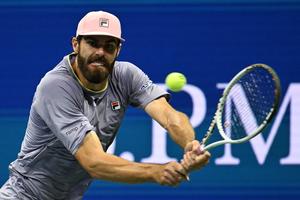 (250826) -- NUEVA YORK, 26 agosto, 2025 (Xinhua) -- Imagen del 25 de agosto de 2025 de Reilly Opelka, de Estados Unidos, devolviendo la pelota durante el partido de primera ronda de individuales masculinos, ante Carlos Alcaraz, de España, en el campeonato de tenis US Open 2025, en Nueva York, Estados Unidos. (Xinhua/Li Rui) (oa) (ah) (vf)