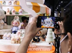 (250910) -- BEIJING, 10 septiembre, 2025 (Xinhua) -- Un visitante toma fotografías en un estand de Pop Mart durante la Feria Internacional de Comercio de Servicios de China (CIFTIS, por sus siglas en inglés) 2025, en Beijing, capital de China, el 10 de septiembre de 2025. La CIFTIS 2025, abrió sus puertas el miércoles en Beijing, bajo el tema "Abrazar tecnologías inteligentes, impulsar el comercio de servicios". (Xinhua/Shan Yuqi) (ah) (ra) (ce)