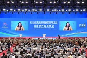 (250910) -- BEIJING, 10 septiembre, 2025 (Xinhua) -- Johanna Hill, directora general adjunta de la Organización Mundial de Comercio, habla en la Cumbre Mundial del Comercio de Servicios de la Feria Internacional de Comercio de Servicios de China (CIFTIS, por sus siglas en inglés) 2025 a través de un video, en Beijing, capital de China, el 10 de septiembre de 2025. (Xinhua/Li Xin) (ah) (ra) (vf)