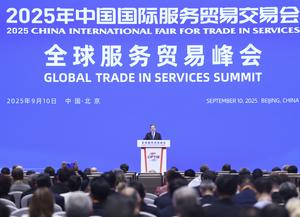 (250910) -- BEIJING, 10 septiembre, 2025 (Xinhua) -- Ding Xuexiang, miembro del Comité Permanente del Buró Político del Comité Central del Partido Comunista de China, y vice primer ministro del Consejo de Estado, pronuncia un discurso en la Cumbre Mundial del Comercio de Servicios de la Feria Internacional de Comercio de Servicios de China 2025, en Beijing, capital de China, el 10 de septiembre de 2025. (Xinhua/Ding Lin) (ah) (ra) (ce)
