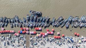 (250911) -- BEIJING, 11 septiembre, 2025 (Xinhua) -- Vista aérea tomada con un dron del 8 de septiembre de 2025 de barcos pesqueros en un puerto, en distrito de Fengnan de Tangshan, en la provincia de Hebei, en el norte de China. (Xinhua/Li Xiuqing) (da) (ra) (ce)