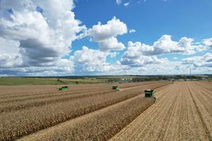 (250911) -- BEIJING, 11 septiembre, 2025 (Xinhua) -- Imagen tomada con un dron el 10 de septiembre de 2025 de cosechadoras trabajando en una granja bajo el Grupo Beidahuang, en la provincia de Heilongjiang, en el noreste de China. (Xinhua/Xu Yingxian) (da) (ra) (ce)