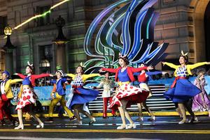 (250914) -- SHANGHAI, 14 septiembre, 2025 (Xinhua) -- Imagen del 13 de septiembre de 2025 de una compañía artística de Shanghai Disneyland Resort realizando una presentación durante el desfile de carrozas del Festival de Turismo de Shanghai, en Shanghai, en el este de China. La ceremonia de inauguración del 36 desfile de carrozas del Festival de Turismo de Shanghai se celebró el sábado en el distrito de Huangpu de Shanghai. Un total de 25 carrozas y 24 equipos artísticos de 15 países y regiones participaron en el desfile. (Xinhua/Fang Zhe) (oa) (ah)