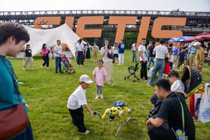(250913) -- BEIJING, 13 septiembre, 2025 (Xinhua) -- Un niño interactúa con un robot en la sección al aire libre del área de exposición de Servicios Culturales y Turísticos de la Feria Internacional de Comercio de Servicios de China (CIFTIS, por sus siglas en inglés) 2025, en el Parque Shougang, en Beijing, capital de China, el 13 de septiembre de 2025. En la CIFTIS 2025, una variedad de tecnologías de vanguardia han enriquecido la exposición, proporcionando experiencias culturales y turísticas más interactivas e inmersivas para los visitantes. (Xinhua/Xu Qin) (jg) (da)