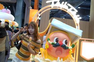 (250912) -- BEIJING, 13 septiembre, 2025 (Xinhua) -- Una visitante posa para fotografías en el estand de Pop Mart en la Feria Internacional de Comercio de Servicios de China (CIFTIS, por sus siglas en inglés) 2025, en el parque Shougang, en Beijing, capital de China, el 13 de septiembre de 2025. La CIFTIS 2025 está abierta al público en general del 13 al 14 de septiembre. Los visitantes con reservación pueden acceder a la feria de forma gratuita. (Xinhua/Zhang Xinjing) (oa) (da)