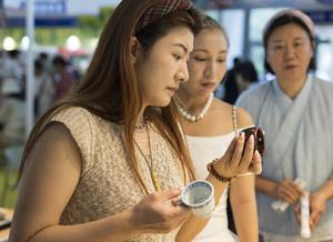 (250912) -- BEIJING, 12 septiembre, 2025 (Xinhua) -- Una visitante selecciona juegos de té en la 19 Exposición Internacional del Té y la Ceremonia del Té de Beijing en el Centro de Exposiciones Agrícolas de China, en Beijing, capital de China, el 12 de septiembre de 2025. La Exposición Internacional del Té y la Ceremonia del Té de Beijing, de cuatro días de duración, comenzó el viernes en Beijing, presentando productos de té de más de diez áreas de producción de todo el país. (Xinhua/Cai Yang) (jg) (da) (vf)