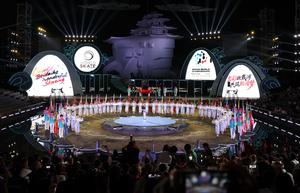 (250912) -- QINHUANGDAO, 12 septiembre, 2025 (Xinhua) -- Imagen del 12 de septiembre de 2025 de la ceremonia de apertura del Campeonato Mundial de Patinaje 2025, en el distrito de Beidaihe de Qinhuangdao, en la provincia de Hebei, en el norte de China. (Xinhua/Yang Shiyao) (rtg) (ra) (vf)