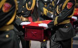(250913) -- SHENYANG, 13 septiembre, 2025 (Xinhua) -- La guardia de honor escolta los féretros que contienen los restos de los mártires de los Voluntarios del Pueblo Chino (VPCh) durante una ceremonia de inhumación en el cementerio de mártires de los VPCh, en Shenyang, en la provincia de Liaoning, en el noreste de China, el 13 de septiembre de 2025. Los restos de 30 mártires de los VPCh que ofrendaron su vida durante la Guerra de Resistencia contra la Agresión de Estados Unidos y Ayuda a Corea (1950-1953) fueron sepultados el sábado en Shenyang. Los restos de los soldados caídos fueron traídos de vuelta a China desde la República de Corea el viernes. (Xinhua/Pan Yulong) (jg) (rtg) (oa) (ra)