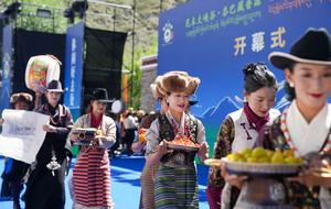 (250912) -- LHASA, 12 septiembre, 2025 (Xinhua) -- Personas presentan especialidades locales en la ceremonia de inauguración de un festival de turismo que presenta la cultura del incienso tradicional tibetano, en el distrito de Nyemo de Lhasa, en la región autónoma de Xizang, en el suroeste de China, el 12 de septiembre de 2025. (Xinhua/Jigme Dorje) (jg) (da) (vf)