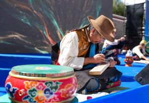 (250912) -- LHASA, 12 septiembre, 2025 (Xinhua) -- Un artesano realiza tallas en madera en la ceremonia de inauguración de un festival de turismo que presenta la cultura del incienso tradicional tibetano, en el distrito de Nyemo de Lhasa, en la región autónoma de Xizang, en el suroeste de China, el 12 de septiembre de 2025. (Xinhua/Jigme Dorje) (jg) (da) (vf)