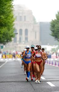(250913) -- TOKIO, 13 septiembre, 2025 (Xinhua) -- Kimberly García León (frente), de Perú, compite durante la final de 35 km de marcha femenina en el Campeonato Mundial de Atletismo 2025, en Tokio, Japón, el 13 de septiembre de 2025. (Xinhua/Jia Haocheng) (rtg) (oa) (da)