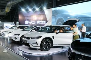 (250912) -- YANGON, 12 septiembre, 2025 (Xinhua) -- Personas visitan el estand de BYD en la Exposición de Automóviles y Autopartes de Myanmar 2025, en Yangón, Myanmar, el 12 de septiembre de 2025. La exposición comenzó aquí el viernes. (Xinhua/Myo Kyaw Soe) (rtg) (ra) (vf)