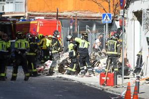 (250914) -- MADRID, 14 septiembre, 2025 (Xinhua) -- Imagen del 13 de septiembre de 2025 de bomberos entrando a un edificio dañado en el sitio de una explosión, en Madrid, España. Al menos 21 personas resultaron heridas después de una explosión que provocó el derrumbe parcial de un edificio en Madrid, capital de España, la tarde del sábado, informaron las autoridades locales. La explosión se produjo alrededor de las 15:00 horas en un bar del sur de Madrid, de acuerdo con la cadena de televisión local TeleMadrid. Los servicios de emergencia indicaron que tres de los heridos se encuentran en estado grave. (Xinhua/Gustavo Valiente) (rtg) (ah)
