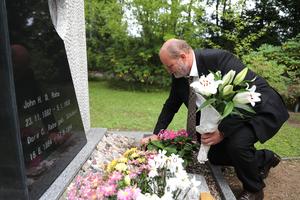 (250917) -- BERLIN, 17 septiembre, 2025 (Xinhua) -- Imagen del 7 de agosto de 2025 de Christoph Reinhardt, bisnieto de John Rabe, lamentándose en la tumba de John Rabe, en Berlín, Alemania. Recordar es más que un acto de reflexión, es una responsabilidad, afirmó Christoph Reinhardt, bisnieto de John Rabe, un alemán recordado por proteger a cientos de miles de civiles chinos durante la Masacre de Nanjing en 1937. (Xinhua/Du Zheyu) (ah) (ce)